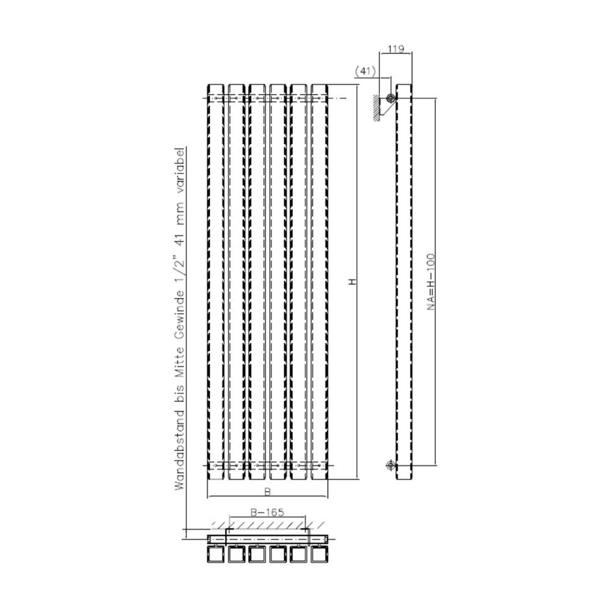 Eucotherm Supra Square Tube Vertical Radiator 550 x 1800mm