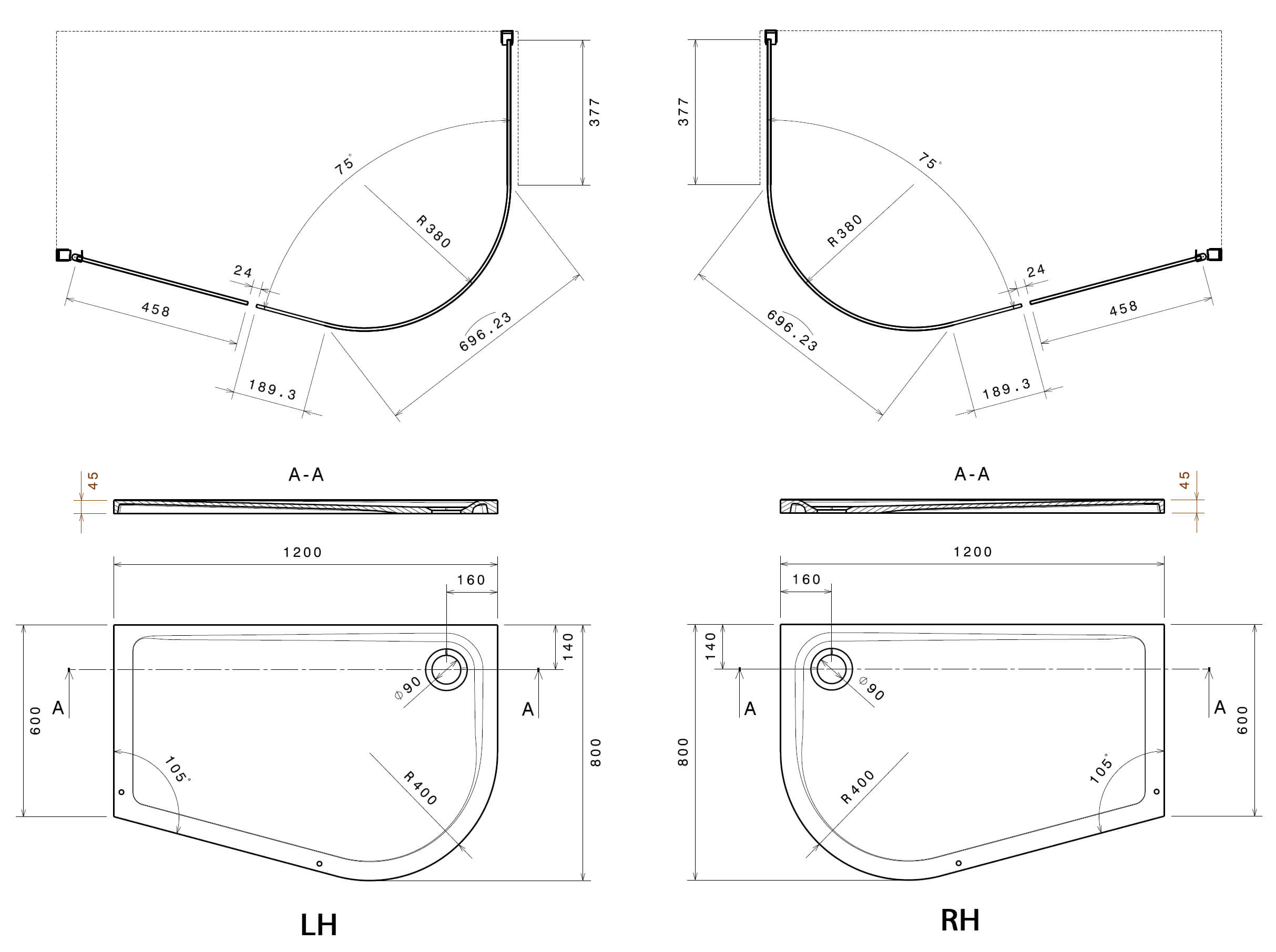 Frontline Aquaglass+ Lux 8mm Quadrant Enclosure 1200 x 600mm.