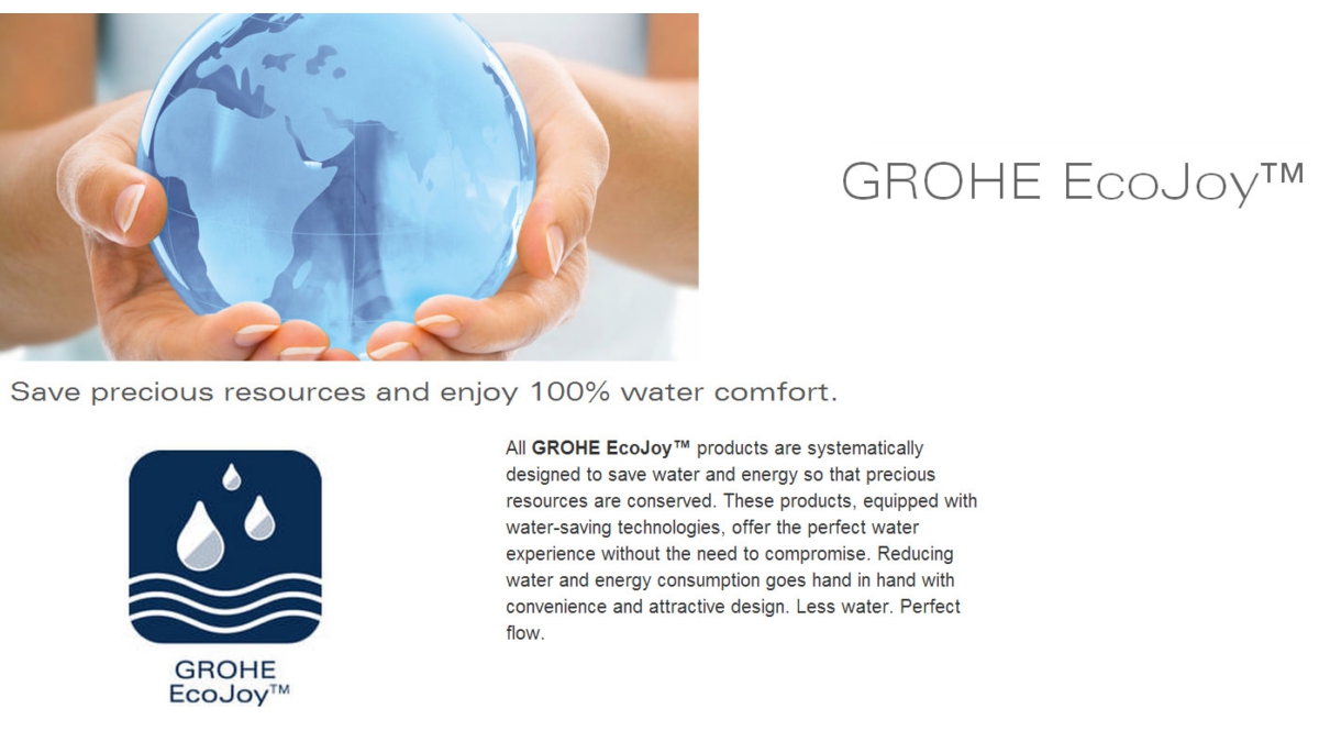 - GROHE EcoJoy is a unique, integrated water saving technology by Grohe, which allows you to save water and energy consumption, without compromising the performance and charm of this digital controller and bath diverter