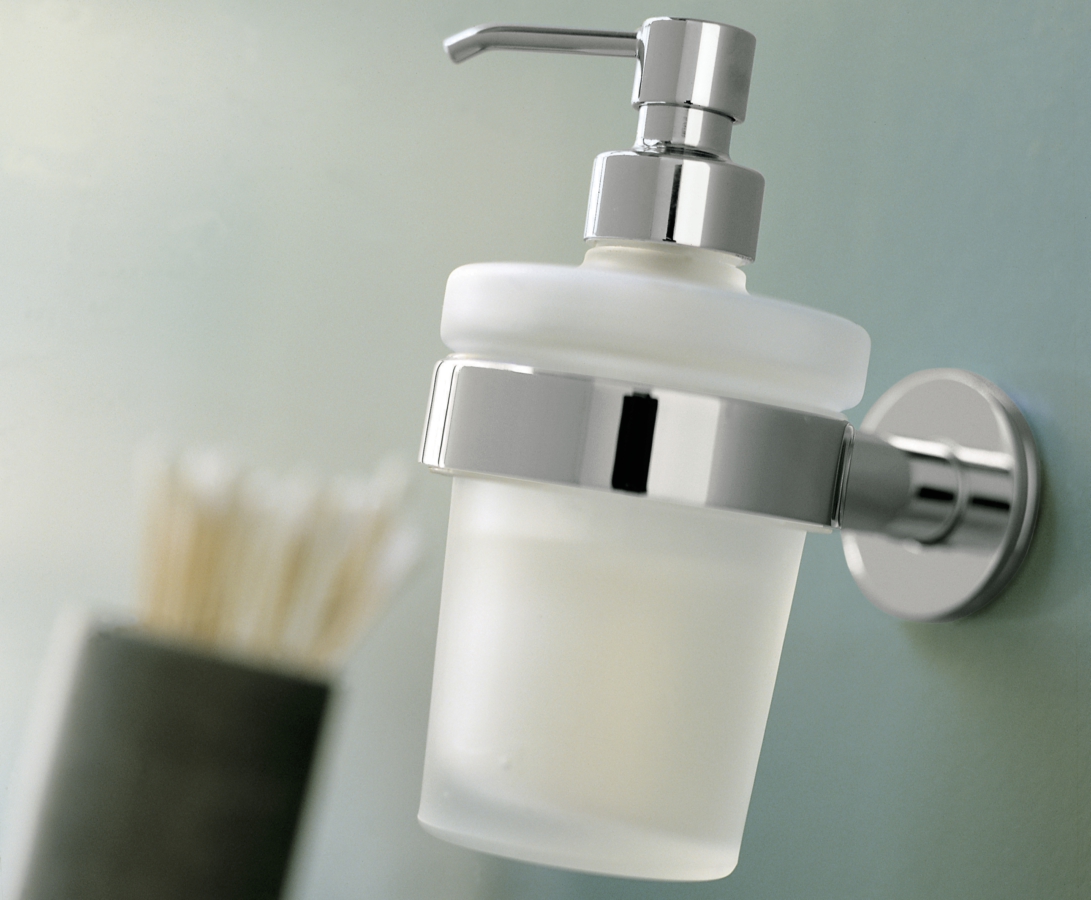 Inda infuses an enormous measure of elegance into the Soap Dispenser from its Touch range to bring you a creation that is a pleasure to use. In a gentle shape that is user-friendly as well as practical, it is made of tough, high-grade glass with a glossy satined finish topped by a brass pump with a brilliant chrome finish. Lightweight and offering a firm grip it makes an excellent addition to your bathroom to elevate its comfort level. It comes in 2 versions; one which is suitable for wall mounting and the other designed for freestanding.